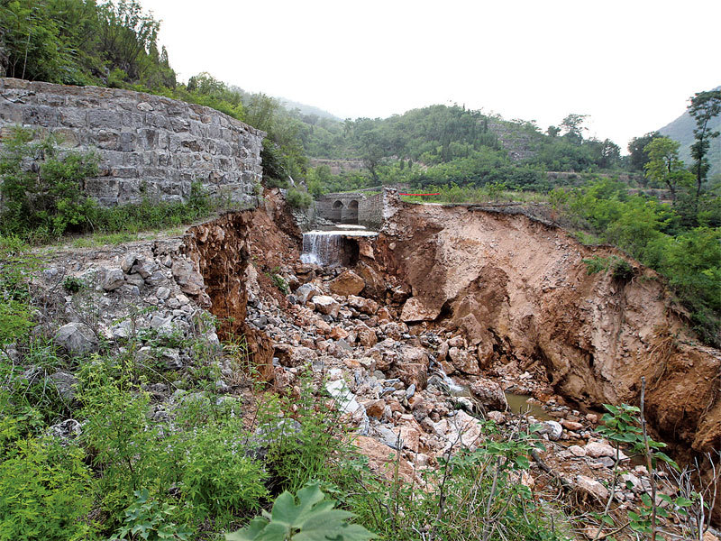 2014年6月23日凌晨,河南省林州市大型人工引水工程紅旗渠的總乾渠趙所段發生決口,大量民房被沖毀,農田被淹。(大紀元資料室)