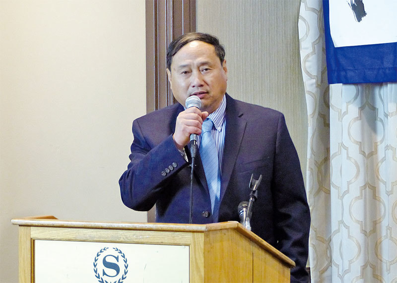 中國民主黨全委會主席王軍濤2017年6月6日於紐約紀念「六四」28周年大會發言。(林丹/大紀元)