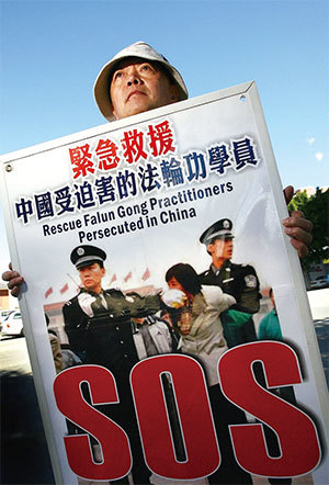 政法委過去做為維穩的工具,在周永康時期權力無限膨漲,成為貪官權貴鎮壓百姓的打手,扮演這樣一個不光彩的角色。圖為2006年4月2日澳洲法輪功學員呼籲制止中共迫害。(AFP)
