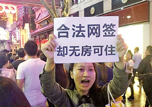 2017年6月10日晚,上海市最繁華的南京路傳來「商住兩用 網簽為界」的口號聲,他們由上海市購買商住樓(又稱公寓式辦公樓)的千餘名業主喊出,維權活動遭到數百名警察鎮壓,數十人被抓走。
