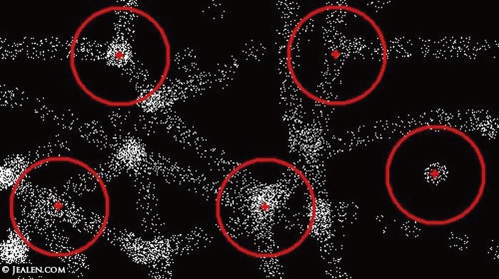 多重宇宙論認為,在宇宙中存在有大量的可觀測區(紅十字和紅圈所示),我們的「宇宙」是其中的一個可觀測區。(維基百科)