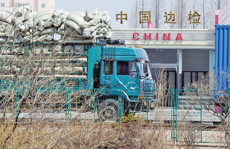 韓媒披露,由於大米庫存見底,北京停止糧食出口並嚴控邊境走私,近期北韓米價高漲。民怨或爆發。圖為中朝邊境的邊檢站。(AFP)