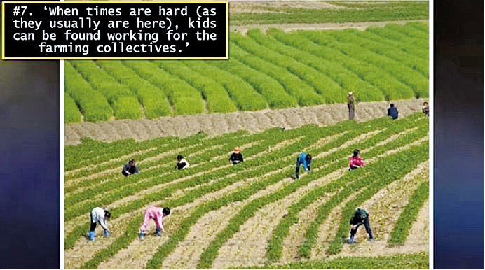 「人們全天都不停地摘菜,一天可以賺取約1萬韓幣(大約1.25美元),這些錢可以買兩公斤大米了,但是這些人還要給原來的工作單位支付請假的費用,所以其實也是賺不了多少錢的。」知情者說。