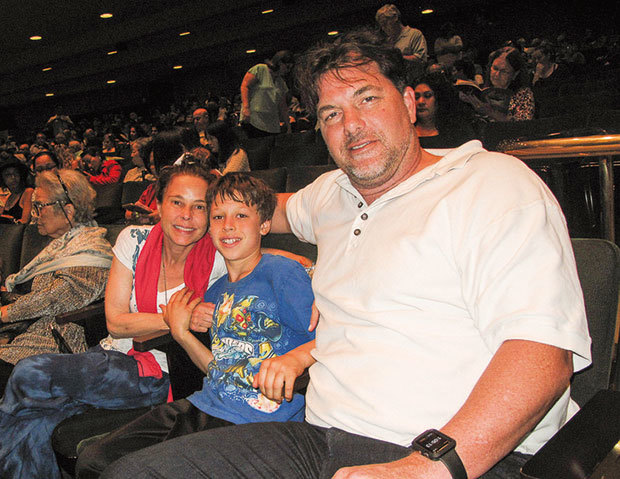 好萊塢劇作家兼製片人Michael Vickerman帶著妻子Dana Barron和兒子一同欣賞神韻演出。(攝影/劉菲)