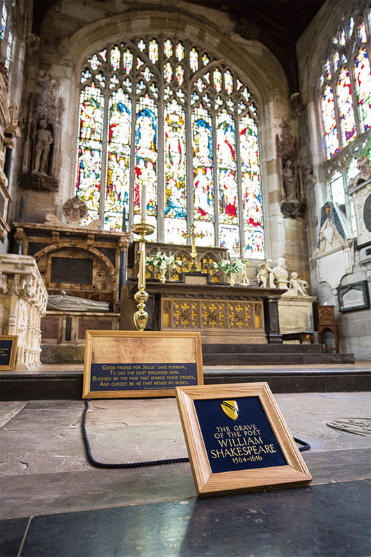 斯特拉特福德聖三一教堂裡的莎士比亞之墓。(AFP)