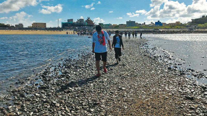 不過,若想在「摩西分海」間踏浪,必須先探查潮汐表了解漲退潮時間,避免漲潮時受困在赤嶼島回不來。