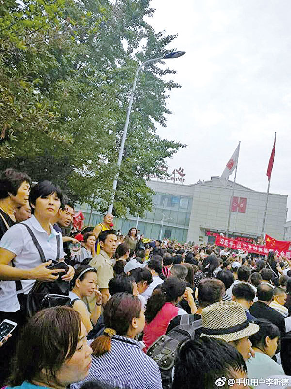 7月24日數萬名善心匯投資人進京,多數聚集在北京大紅門國際會展中心前,抗議當局的調查。