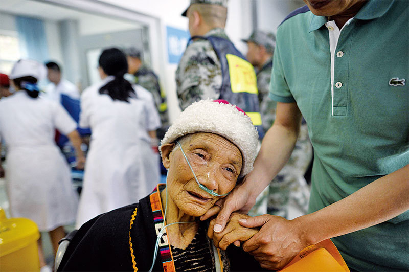8月10日,在九寨溝縣醫院的一名傷者。(AFP)