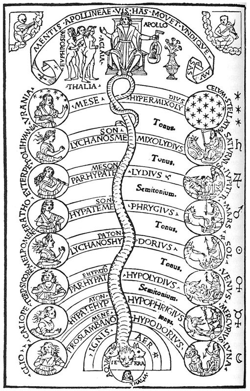 意大利文藝復興時期的雕刻表現出阿波羅、繆斯和行星球等遵從音樂的普遍形式。(公有領域)