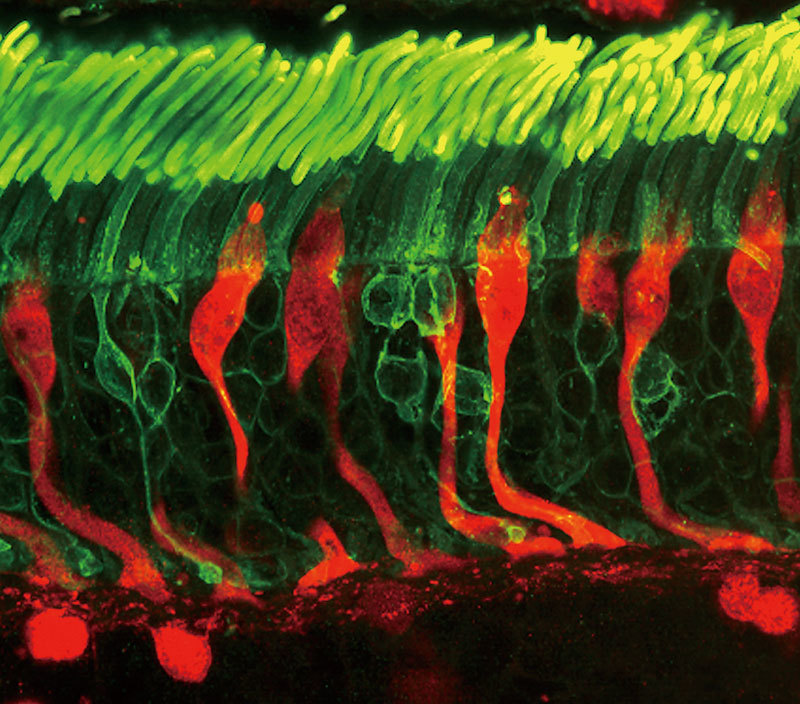 特殊染色方法顯示人眼睛視網膜中的視覺細胞的結構特點。人體的其他部位也存在很多可以感受光線的細胞。(flickr)