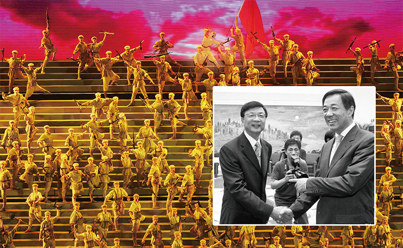 劉北憲曾大肆吹捧過薄熙來,是薄周政變圈中人物。圖為2011年9月17日薄熙來(右)和中國新聞社社長劉北憲(左)在重慶會面握手。(新紀元合成圖)