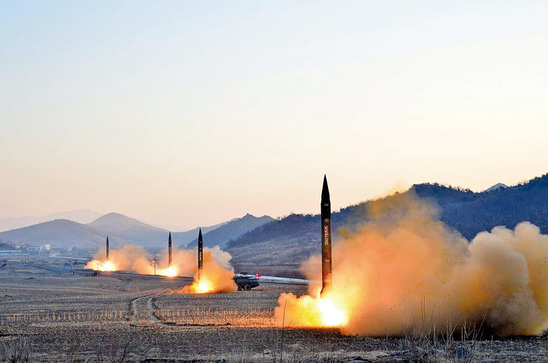 一名北韓高官近期在內部會議上稱北韓的新型彈道導彈能打擊中國的任何一個地方。圖為北韓3月6日試射四枚導彈。(AFP)