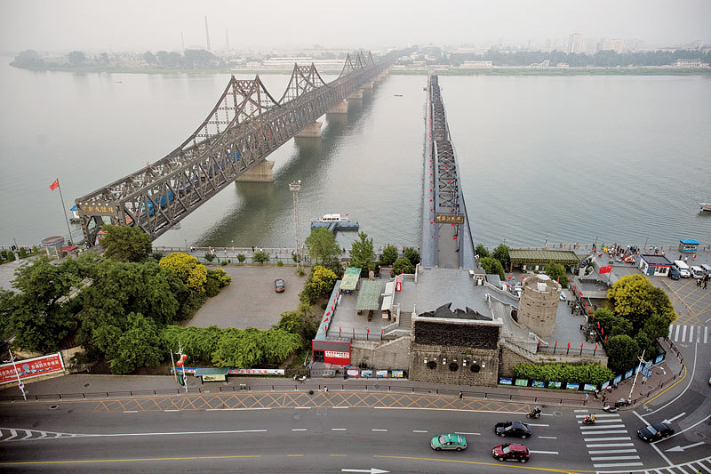 北韓寧邊咸鏡北道豐溪里核試驗場距中國邊界約90多公里。一旦北韓核試「失手」,中國東北地區將出現大片永久荒蕪地帶。圖為連接北韓和中國的丹東大橋。(AFP)