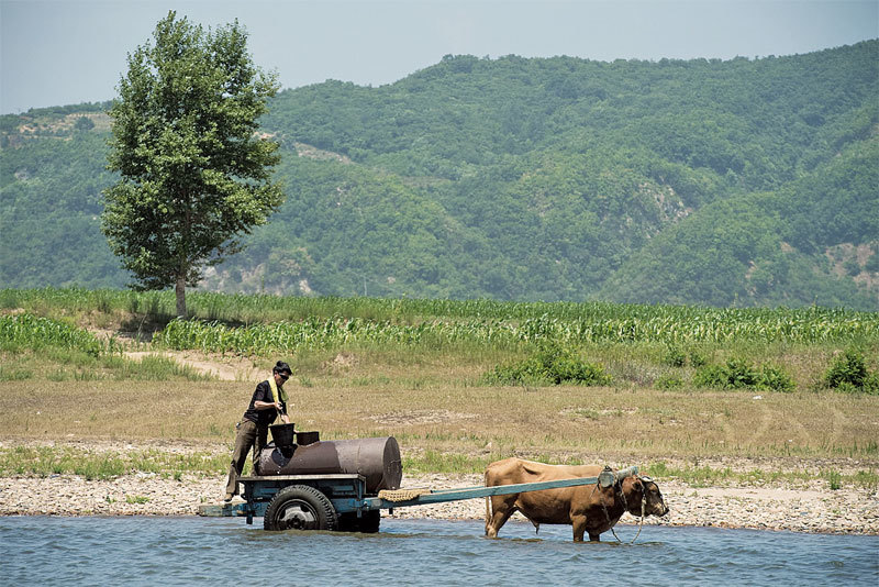 北韓9月3日第六次核試,鴨綠江水及周邊環境或再次被污染,將鴨綠江水作為飲用水和灌溉水源的200多萬丹東人的健康、生命安全受到威脅。圖為一民眾在鴨綠江河畔取水。(AFP)