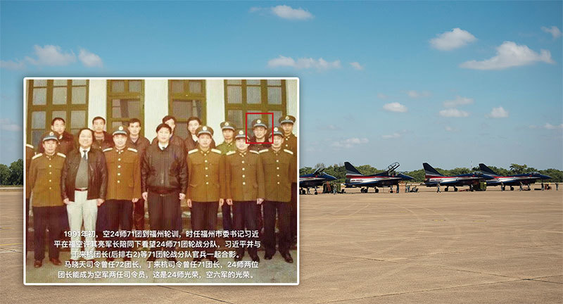 這張照片據稱是在1991年初拍的,照片中時任福建省福州市委書記、福州軍分區黨委第一書記的習近平站在前排的中間,駐紮在福州的時任空軍第八軍軍長的許其亮在習近平的右手邊,而時任空軍24師71團團長的丁來杭站在後排右二。