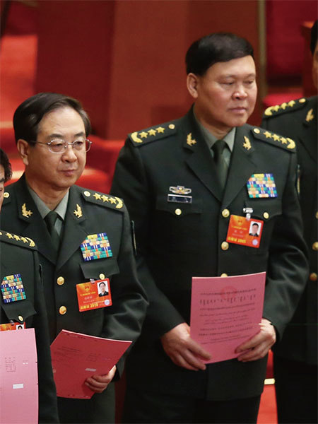 9月1日,剛被免去中央軍委聯合參謀部參謀長的房峰輝(左)及被免去中央軍委政治工作部主任的張陽(右),傳出雙雙接受軍紀委調查。(Getty Images)
