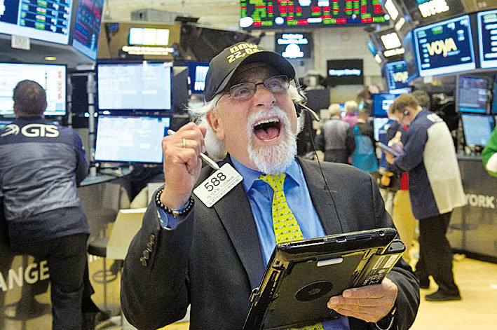 川普上任8個月後,美國經濟各項數據屢創新高,道瓊股指突破22000點,再令各界刮目相看。(AFP)