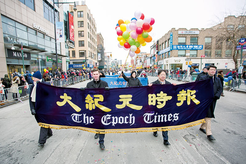 由於對中國政局的準確分析和獨家報導,《大紀元》、新唐人在全球媒體中的威信迅速上升。圖為大紀元傳媒集團參加2015年紐約的中國新年遊行。(Samira Bouaou/大紀元)