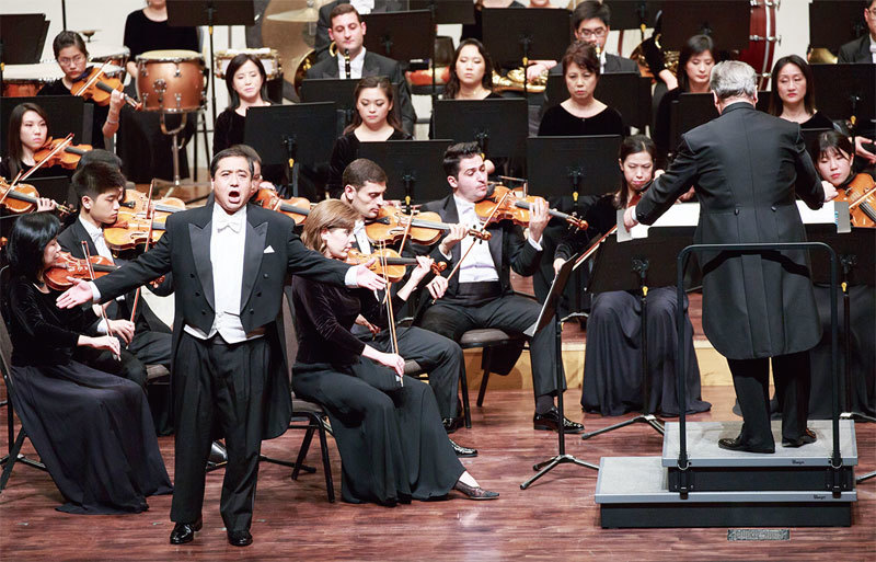 2017年9月26日晚上,神韻交響樂團於高雄市文化中心演出。圖為男高音歌唱家天歌在演唱。(鄭順利/大紀元)