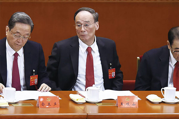 王岐山(中)19大後擔任何種角色,成各方揣測的熱點。(AFP)