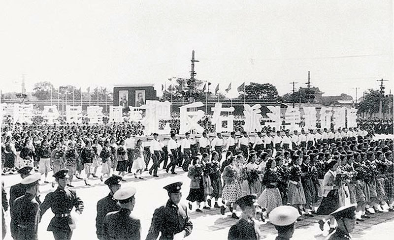 1957年中共發起反右運動(圖)。石揮編導的《霧海夜航》試映後被揭發是反黨反社會主義,在放映廳召開了對石揮的批判大會。(維基百科)