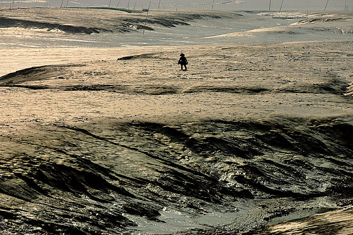 1957年石揮編導的《霧海夜航》被批反黨反社會主義。石揮於批判大會第二天失蹤,隔年公安在寧波海邊挖出了石揮的屍體。圖為浙江寧波錢塘河口。(Getty Images)