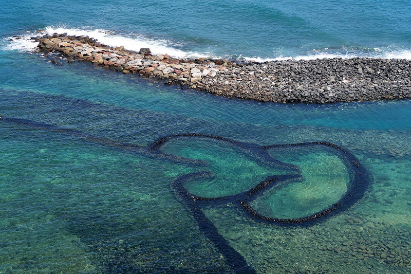 當地居民說,澎湖本島與周邊島嶼共有400多個為捕魚而堆砌的「石滬」,每個都是心形,但只有在七美島看得最清楚,經口耳相傳,成了知名的觀光點。