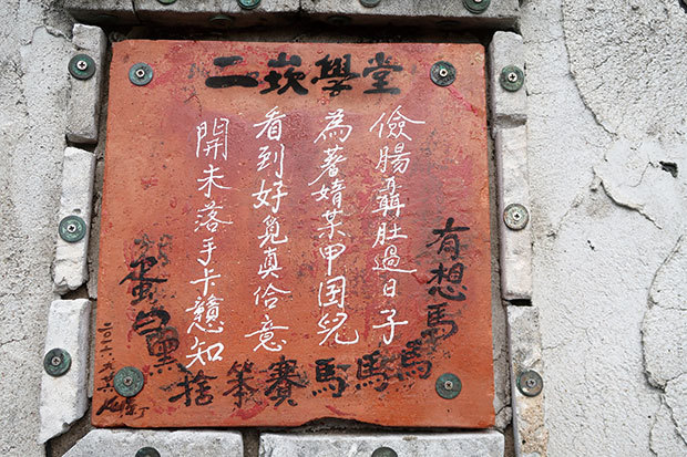 二崁聚落擁有豐富的閩式建築群,都是用珊瑚化石──咾咕石砌成。