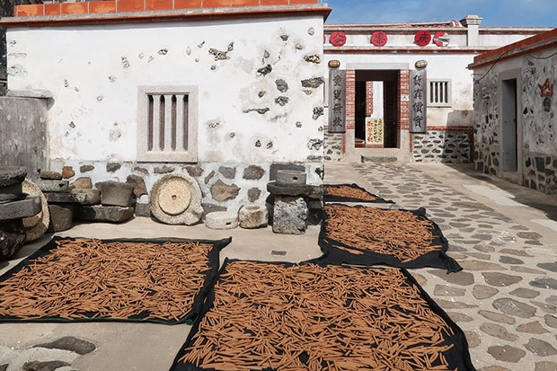 小管魚乾配啤酒是澎湖人最常見的吃法,這些「日晒漁獲」是風土、陽光與漁民共同醞釀出的滋味。嵵裡漁村空氣中瀰漫著魚乾香,每口空氣都是蒸騰的海味。