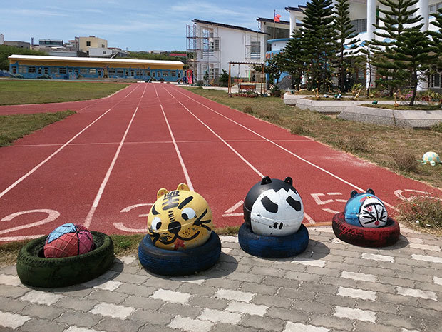 每年東北季風吹來的海漂物,都成為藝文創作的好素材。每一位學生習慣親海、玩海,創意十足,浮球經過彩繪,搖身一變成為可愛的小動物。
