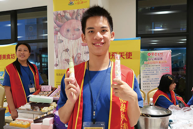 「集愛工坊」成立至今五年,當初是為了遲緩兒的未來發展做規劃,由70幾名家長及各界協辦組織成立,目前有20位學員散居在澎湖縣各地。協會的學員在社工及老師的陪伴下,學習工作技能及適應社區生活,這群身心發展遲緩者逐漸可以烘焙蛋糕、製作滷味,還能做各種手工點心。