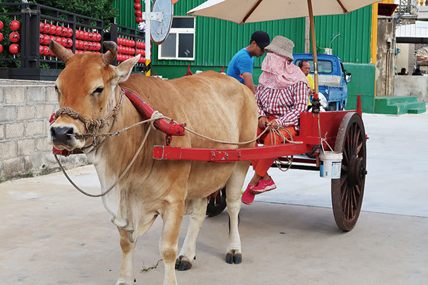 在南寮還可體驗乘牛車的樂趣,阿嬤輕鬆駕著牛車,車上可乘載四、五名乘客。