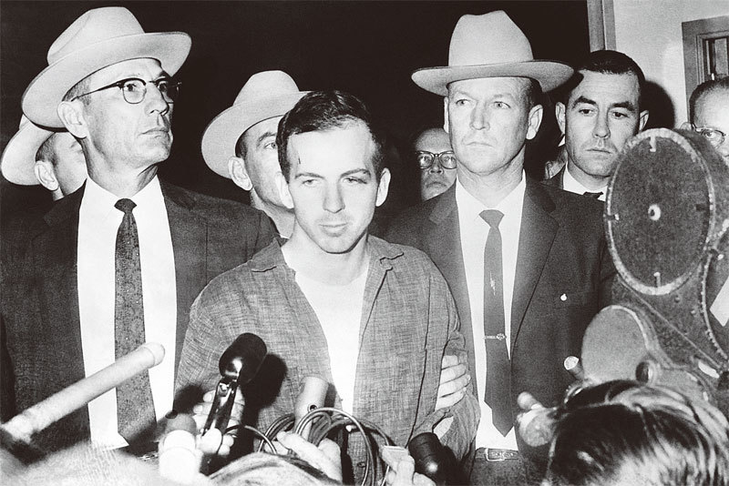 曾經叛逃前蘇聯的美國人李.哈維.奧斯瓦爾德(中)被認定是凶手,他曾說自己是替罪羊。(AFP)
