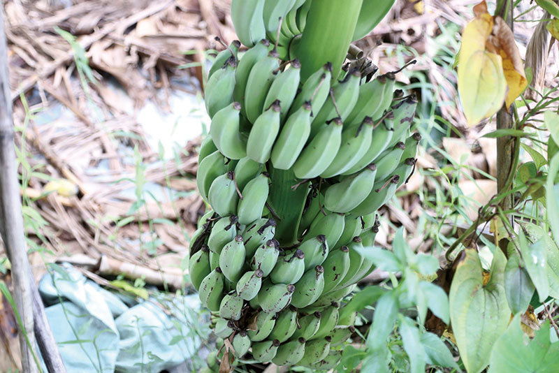 可惜今年兩場颱風卻讓劉達文損失慘重。一到田裡,就看到折斷的香蕉樹躺在地上,上面還結著一梳梳將要長成的香蕉。豆角、絲瓜藤、甘蔗被大風吹斷,全都枯黃了。「今年豆角好靚,本來今日有豆角吃,全死了。」劉達文惋惜地說。