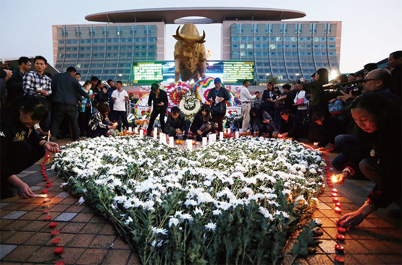 2014年3月1日,兩會前夕,江澤民集團精心策劃昆明恐怖襲擊事件,通過買凶殺戮民眾,發動另類政變。圖為民眾哀悼受難者。(大紀元資料室)