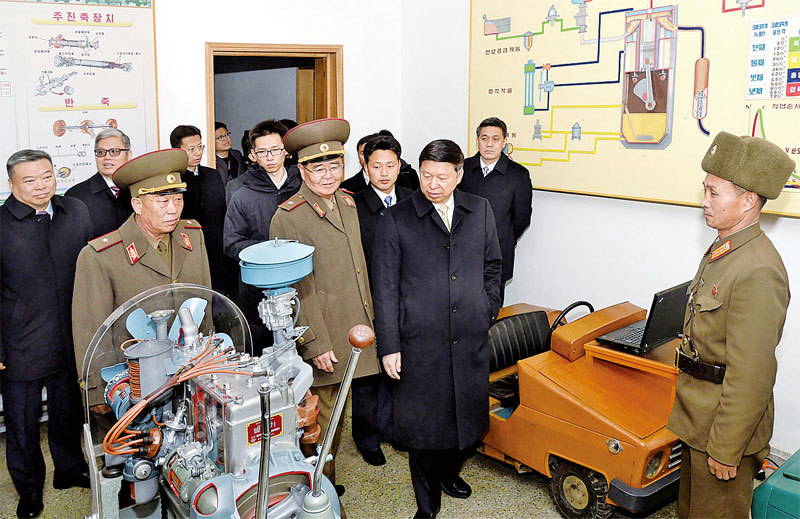 宋濤(中)在北韓等待期間,朝方只給他安排了參觀學校、工廠,以及觀看射擊、表演等活動。(AFP)