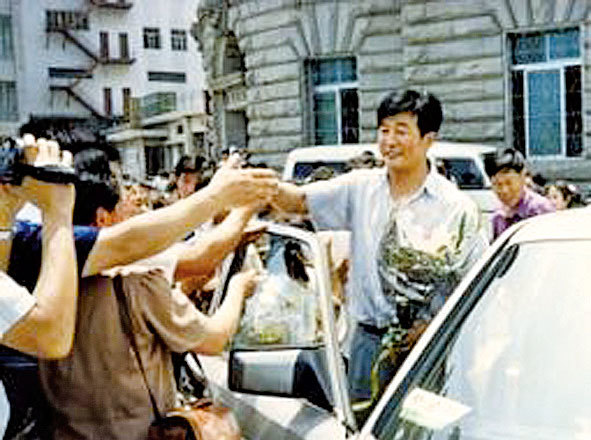 1994年7月,李洪志先生蒞臨大連講法,學員們歡迎師父。(明慧網)