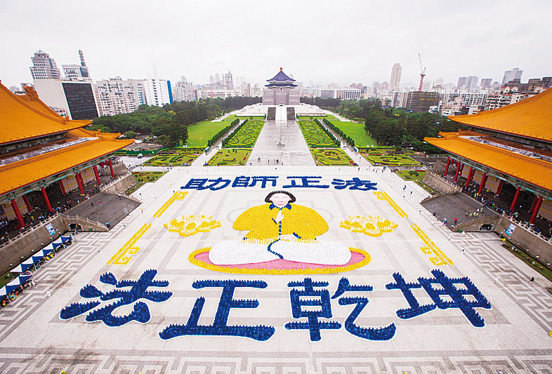 李洪志大師帶領弟子在受難中傳真相、送福音,解救眾生。圖為2017年11月25日,約6400名來自臺灣及世界各地的部分法輪功學員齊聚臺北中正紀念堂排出「助師正法 法正乾坤」壯觀圖像。(陳柏州/大紀元)