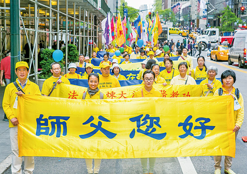 2016年5月13日,在紐約曼哈頓,來自世界各地近萬名的部分法輪功學員舉行了盛大遊行。