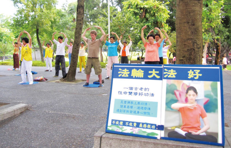 法輪功學員在臺北市榮星花園集體煉功。(明慧網)