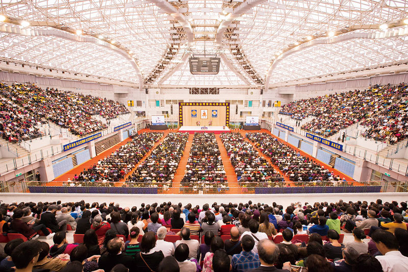 2017年法輪大法臺灣修煉心得交流會11月26日在臺大綜合體育館舉行,約7500名法輪功學員齊聚一堂。(陳柏州/大紀元)