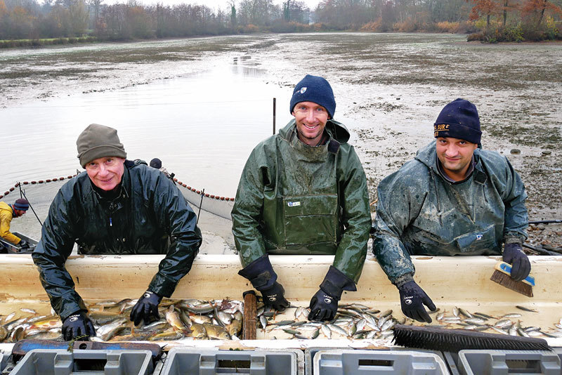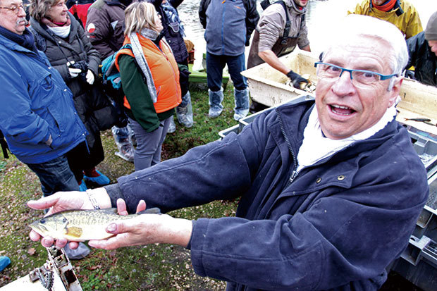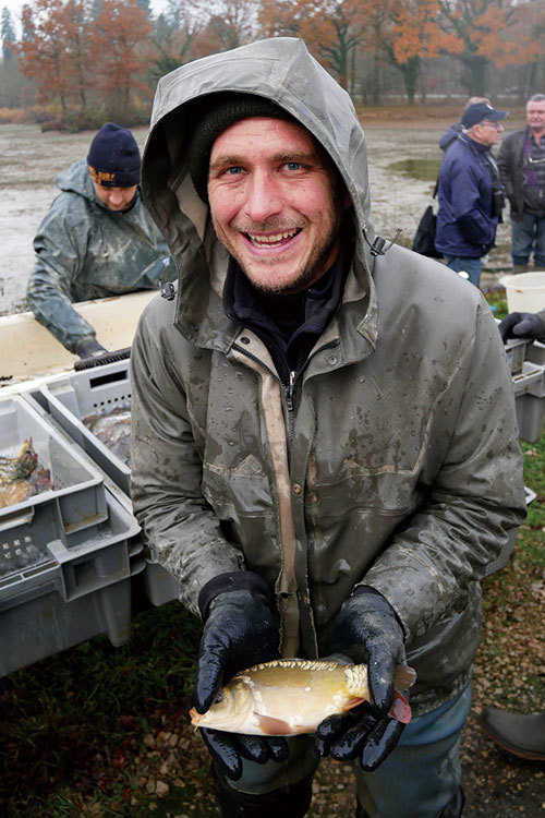 「把魚兒從魚塘裡撈起來,放到槽裡要挑選,這個過程如果天氣太熱,魚缺氧很容易會死掉,所以這裡只有在冬季的時候才捕魚。」當地旅遊局負責人Marc Durand說:「但在寒冷的天氣裡,魚兒就不易受影響。」