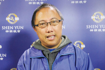 香港南方民主同盟主席龍緯汶三度搭飛機訪臺專程觀賞神韻演出。(李賢珍/大紀元)