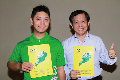 教廷爵士吳育贊與兒子結伴觀賞神韻。(鄭順利/大紀元)