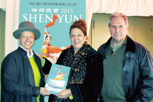 瑞典設計師Lena Bergström(左)和家人一起觀看了神韻演出。(麥蕾/大紀元)