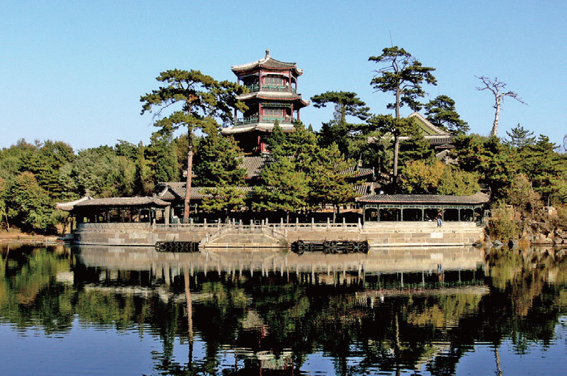 避暑山莊巧用地形,因山就水,融南北建築藝術之精華。宮殿區布局嚴謹,簡樸適度,苑景區自然野趣,人文建築與自然山水相交輝映,園中有園,景內有景,彷彿一幅多姿多采的立體畫卷,不愧享有中國古典園林之最高典範的美譽。◇
