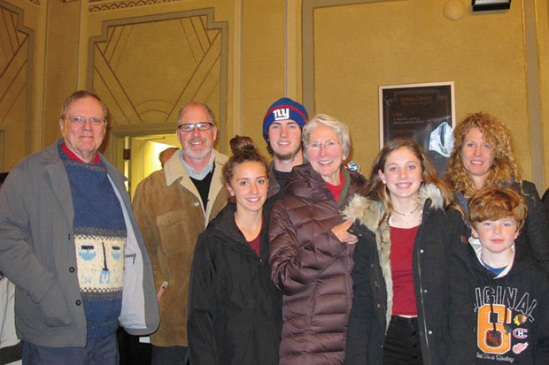美國氣候研究所創辦人兼總監Raymond Johnson先生(左一)跟著全家10人一起來觀看了12月23日在佛蒙特州的伯靈頓的神韻演出。(攝影/麥蕾)