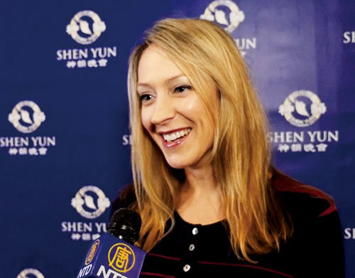 她說:「我認為神韻演出中傳遞的信息非常強大,特別是在今天這樣一個大環境中,雖然演出中講述的是中國的歷史和一些古老時期的故事,但是對今天的人也有很多意義,演出中也展示了很多現代人的情感。」