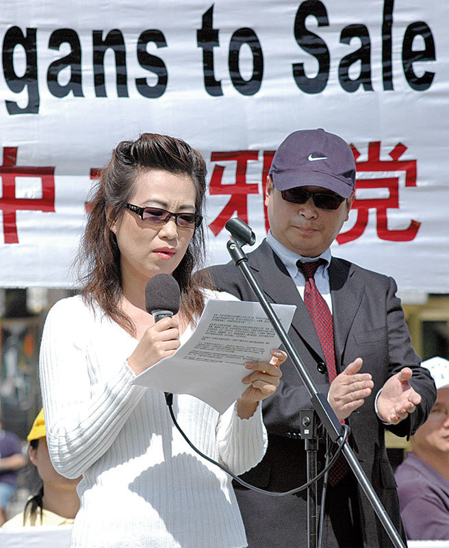 2006年4月20日,安妮和皮特在白宮附近舉行新聞發布會,揭露蘇家屯集中營摘取活體法輪功學員器官牟利。(大紀元)