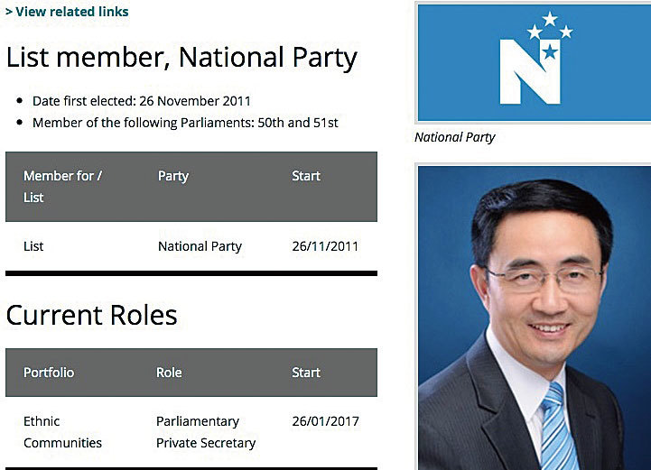 新西蘭執政黨國家黨(National Party)的華人國會議員楊健涉嫌具有中共軍方背景。(新西蘭議會擷圖)